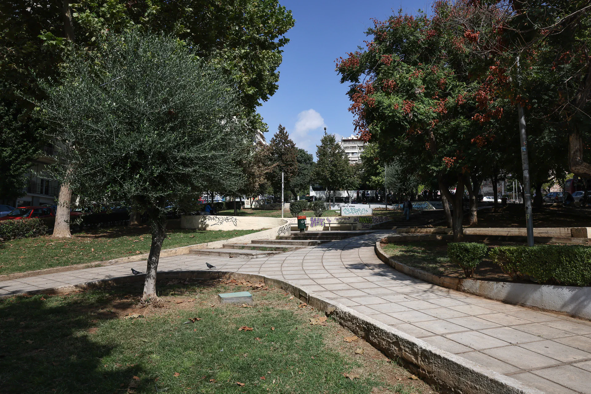 Στο ποίημα «Τοπογραφία», το πάρκο στο τέρμα της Αριστοτέλους, ακριβώς πάνω από το Εργατοϋπαλληλικό Κέντρο και ακριβώς κάτω από τον Άγιο Δημήτριο, μοιάζει να ξεπροβάλλει από την μεγαλειώδη ομίχλη μιας αλλοτινής εποχής: «Ψηλότερ’ απ’ τα σπίτια που κρύβ’ η ομίχλη, / στο άνω της πλατείας με τους πολλούς ναούς, / (που σώζονται περίβλεπτοι ή κάηκαν, και περισώθηκαν μόνο ως ονόματα) / στα μισά σχεδόν του λόφου όπ’ ανέβαιν’ η πόλη, / περίπου εις το ύψος του Κέντρου των εργατών, / σιμά εις τον μέγα του Πολιούχου Ναό, / αγνάντια στις κούνιες όπου διασκεδάζουν τα παιδιά».