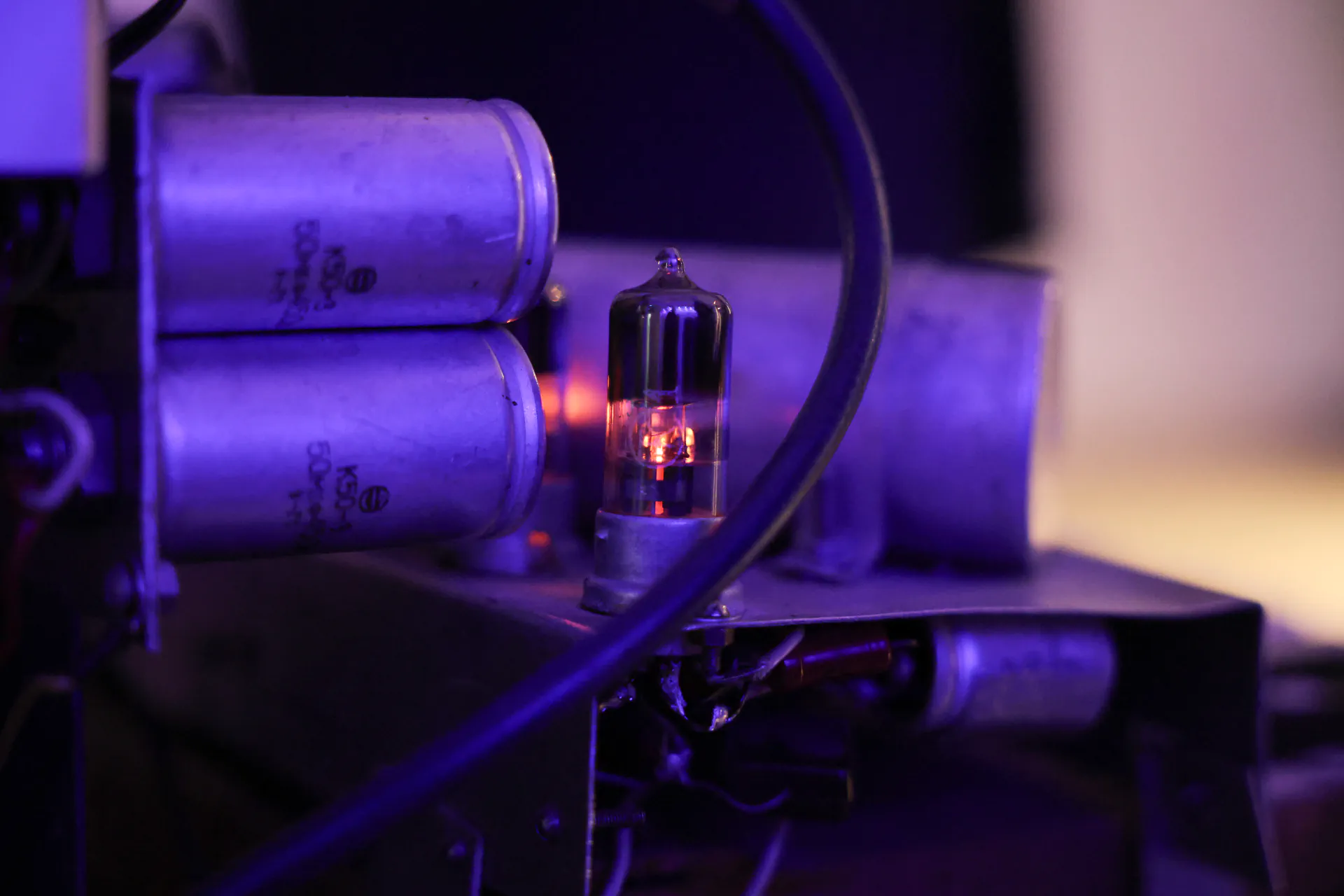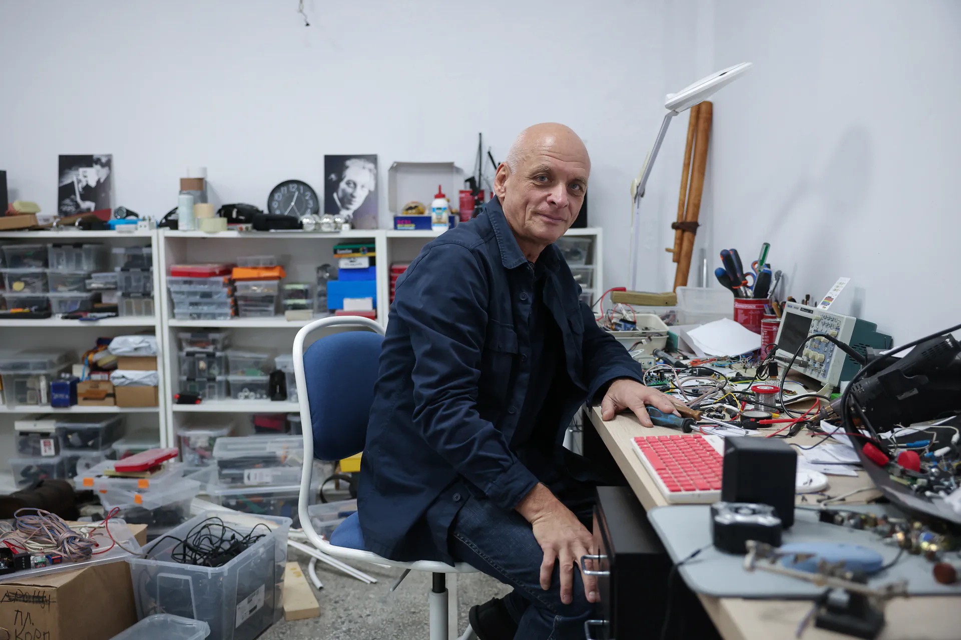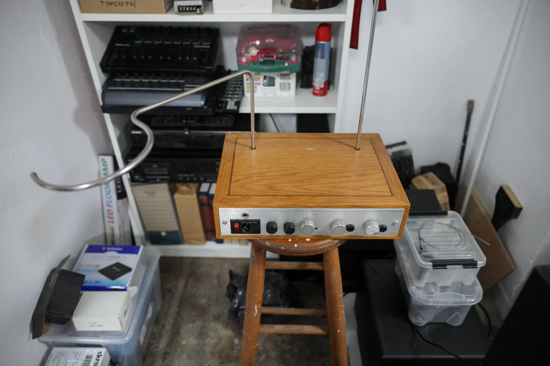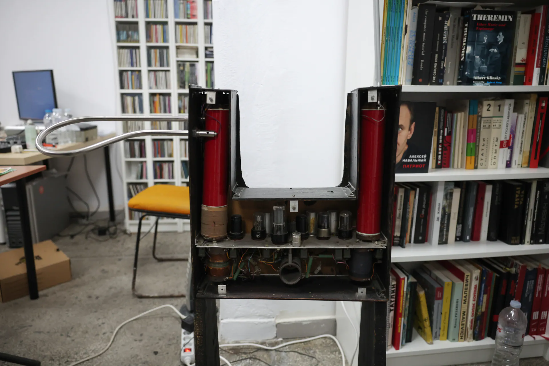 «Το αποκαλώ “γκούλαγκ θέρεμιν”, γιατί το σχεδίασε ο Θέρεμιν όταν ήταν στα γκούλαγκ στις αρχές της δεκαετίας του 1940. Πέρασε έναν χρόνο στη Σιβηρία και μετά μεταφέρθηκε σε μια φυλακή που λειτουργούσε ως ειδικό ινστιτούτο για επιστήμονες. Εκεί έκανε έρευνα και έφτιαξε και το συγκεκριμένο. Είναι αυθεντικό, σπάνιο και πολύτιμο, θέλει όμως επιδιόρθωση και προσπαθώ να το φτιάξω», μας λέει.