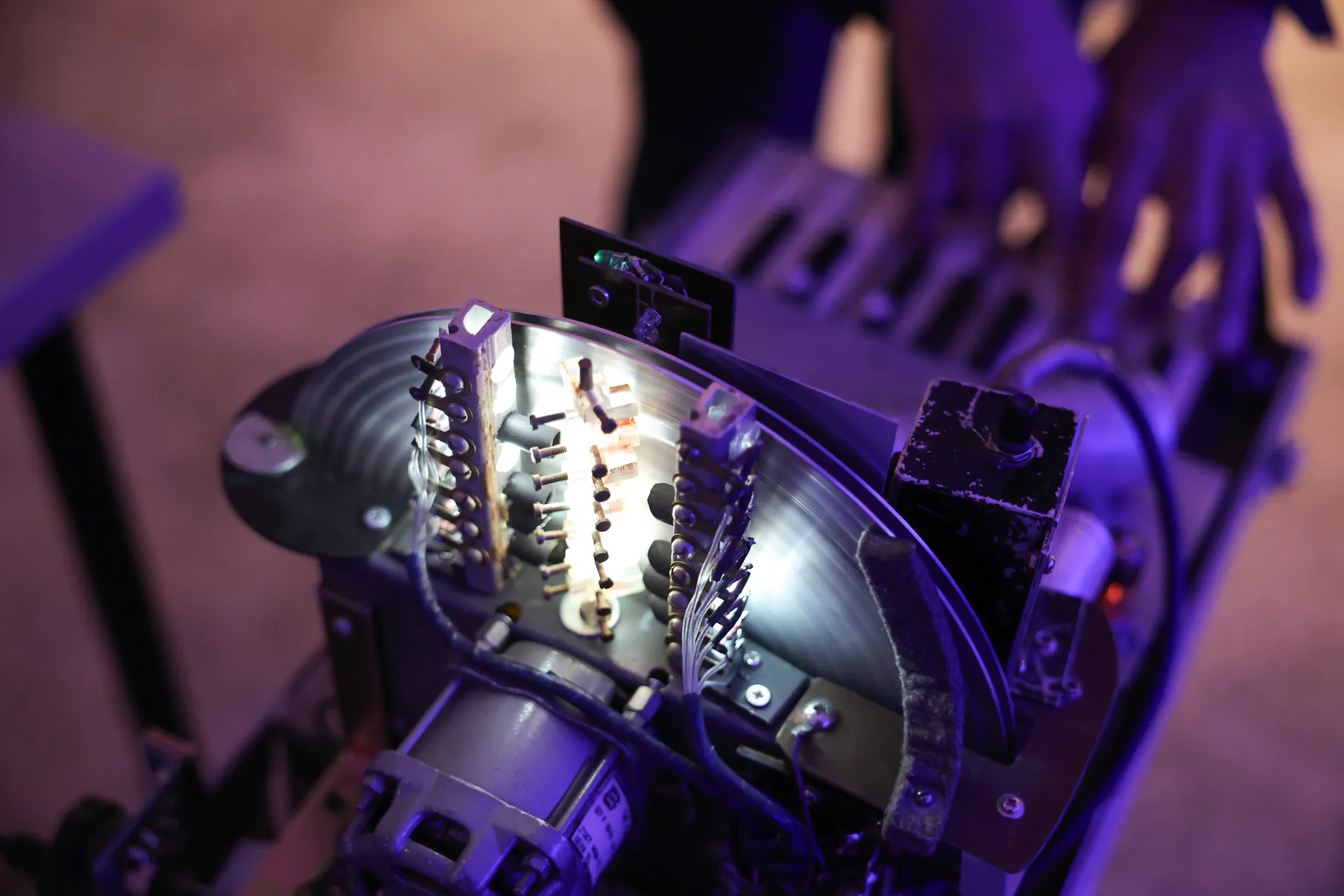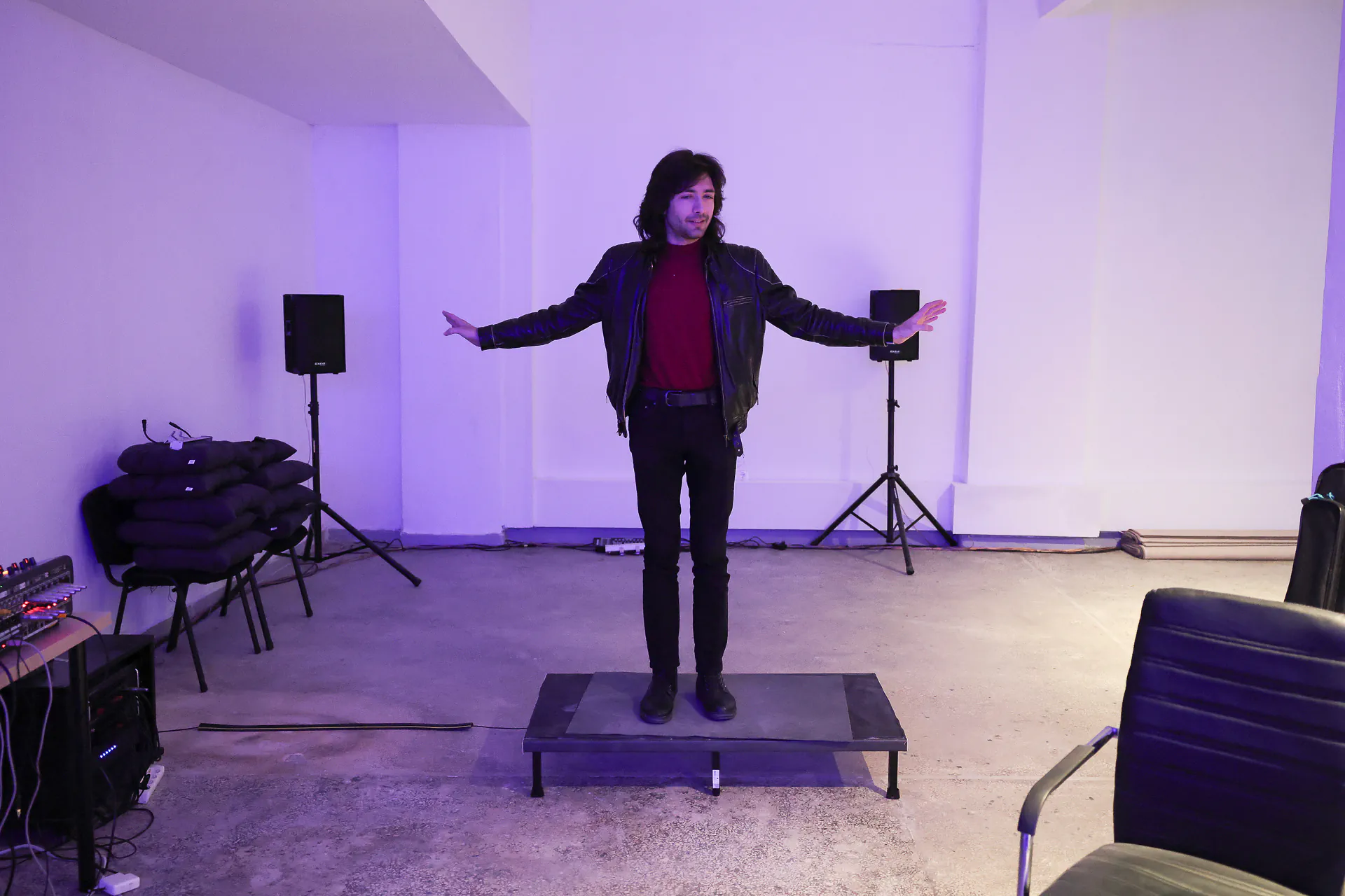 Το terpsitone στο στούνιο του Αντρέι Σμιρνόφ: ένα μοναδικό όργανο που παίζει μουσική ανάλογα με τις κινήσεις του σώματος του ερμηνευτή στην πλατφόρμα του.