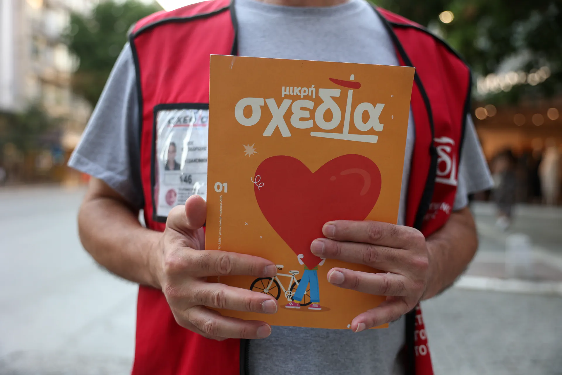 Μοιράστηκε μαζί μας την προσωπική του ιστορία, μας μίλησε για τη ζωή του πριν και μετά τη «Σχεδία», για τις στιγμές που τον σημάδεψαν κρατώντας το περιοδικό και για την περηφάνια που του δίνει το κόκκινο γιλέκο.