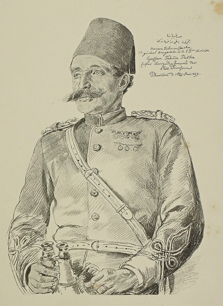 Ο Χασάν Ταχσίν υπηρέτησε στην Κρήτη οκτώ χρόνια. Το 1897 κλήθηκε να υπερασπιστεί τα σύνορα της πατρίδας του εν όψει του επικείμενου ελληνοτουρκικού πολέμου, ο οποίος ως γνωστόν κατέληξε σε στρατιωτική, οικονομική και διπλωματική πανωλεθρία για την Ελλάδα. Εκεί στο Σαραντόπορο και την Ελασσόνα θα καταδιώξει μαζί με τους συμπολεμιστές του τον απροετοίμαστο ελληνικό στρατό μέχρι σχεδόν τη Λαμία και τον Δομοκό. Γυρνώντας προς τη Λάρισα μετά την παύση των εχθροπραξιών, η οποία επήλθε κατόπιν παρέμβασης των Μεγάλων Δυνάμεων, θα πέσει με το άλογό του σε βαθιά χαράδρα, κατακομματιάζοντας το δεξί του πόδι σε ένα ατύχημα οι συνέπειες του οποίου θα τον ταλαιπωρήσουν μέχρι το τέλος της ζωής του. Στα ίδια περάσματα όπου διέπρεψε το 1897 θα γνωρίσει την ήττα το 1912, όταν και θα κατηγορηθεί αδίκως για δειλία, όπως όμως δήλωσε στην τελευταία του συνέντευξη, «η επίκρισις είναι πολύ εύκολος…».