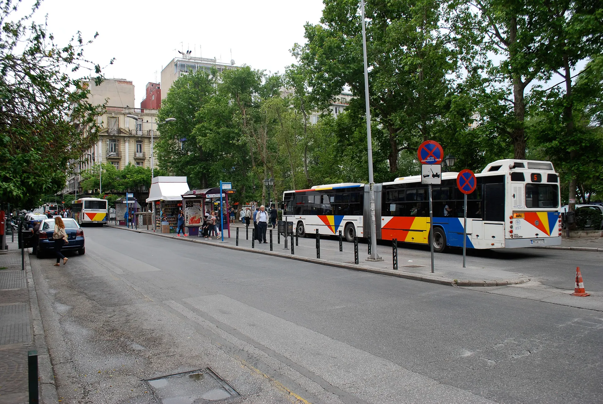 Η κίνηση πυκνώνει. Στο ύψος της Περιφέρειας, με τη Βίλα Αλλατίνη να στέκει επιβλητική, το πεντάρι είναι πλέον γεμάτο. Από εδώ και πέρα, η διάδραση αλλάζει. Στα φανάρια και στις στάσεις, κόσμος παλεύει να ανέβει. Όσοι είναι ήδη όρθιοι προσπαθούν απλώς να κρατηθούν.