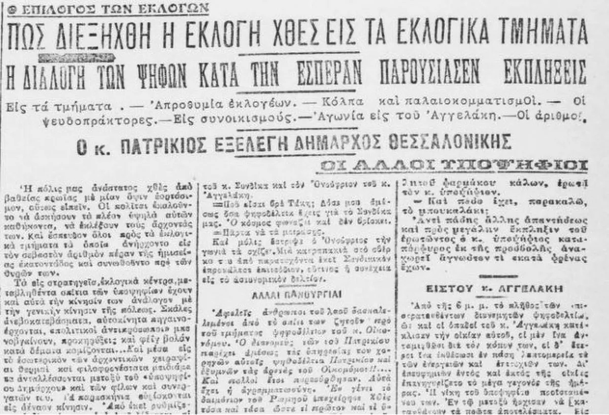 Αυτόν τον στοχαστικό τρόπο βιογράφησης που ανέφερα, τον εφάρμοσα σε ένα σημείο του βιβλίου μου, στο οποίο ο ήρωας κατεβαίνει από το λεωφορείο στη στάση Πέτρου Συνδίκα και: «…Ο Συνδίκας, σκέφτηκε, ήταν δήμαρχος διορισμένος από τους στρατιωτικούς που έκαμαν το Κίνημα του 1922. Επί δημαρχίας του, το 1925, έγιναν οι πρώτες ελεύθερες εκλογές για τοπική αυτοδιοίκηση στις Νέες Χώρες, στους νομούς δηλαδή που προσαρτήθηκαν τότε στην Ελλάδα…».
