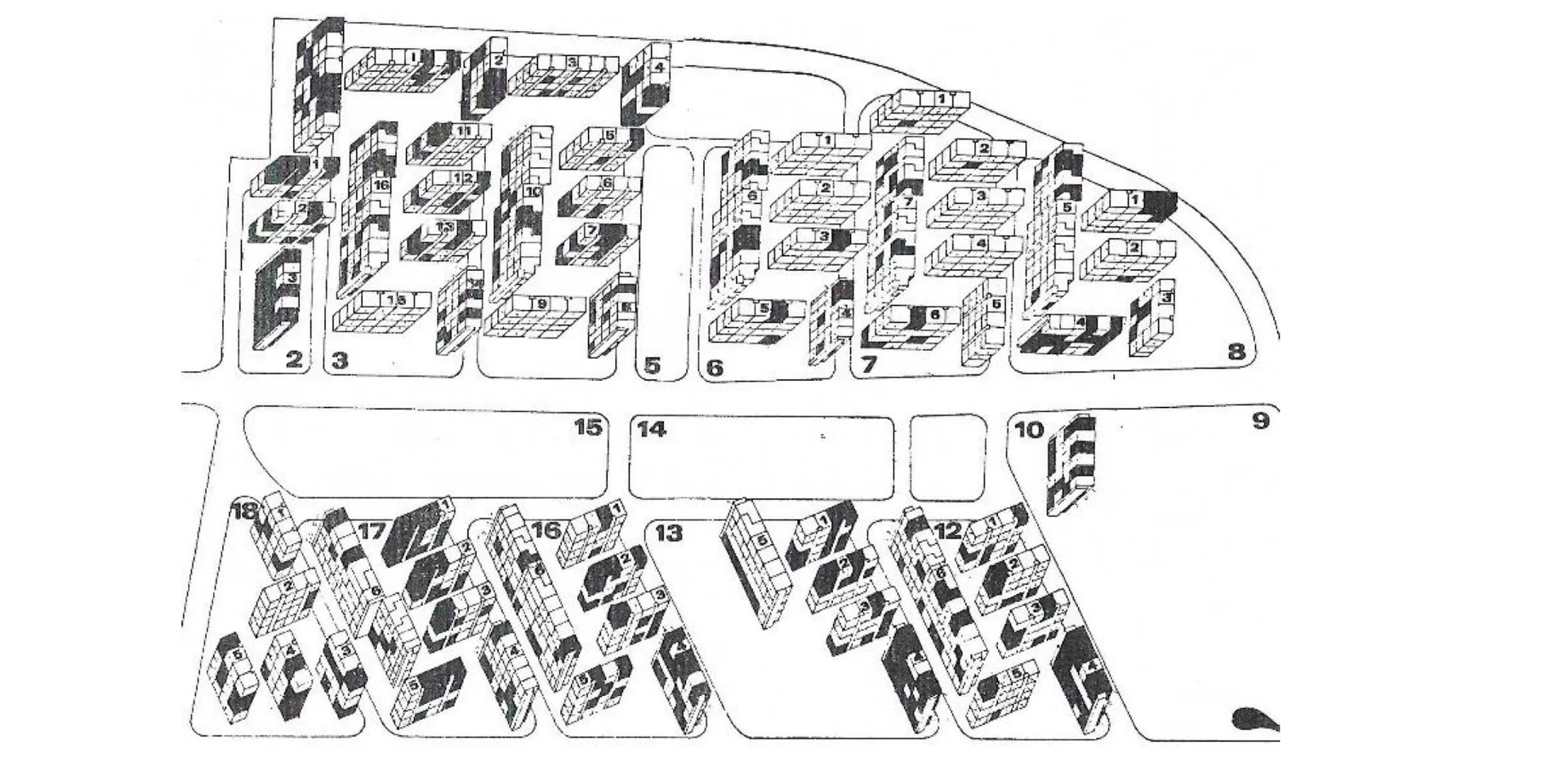 Οι εργατικές κατοικίες χτίστηκαν το 1962 σε έναν συνοικισμό που δημιουργήθηκε για να ανακουφίσει το οξύ στεγαστικό πρόβλημα της Θεσσαλονίκης. Σύμφωνα με την διπλωματική εργασία της Δωροθέας Κατσούλη χτίστηκαν 1.445 διαμερίσματα σε 18 οικοδομικά τετράγωνα πέριξ της περιφερειακής τάφρου. Οι πολυκατοικίες ήταν τετραώροφες με ένα, δύο, τρία ή τέσσερα δωμάτια.
