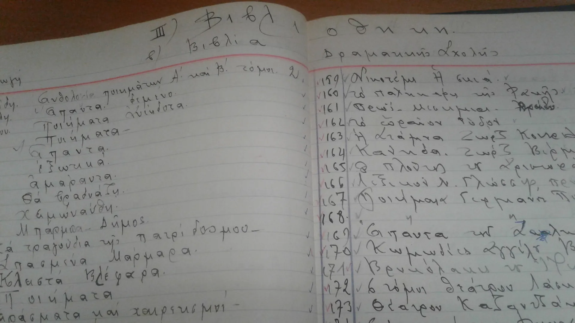 Ο κατάλογος αυτός είναι χειρόγραφος, με τον γραφικό χαρακτήρα του Αλέξανδρου Καζαντζή. Ξεκινάει με περιεχόμενα και καταγράφει τα βιβλία σε κατηγορίες (έργα για πιάνο, έργα για ορχήστρα, έργα για φωνή και πιάνο κλπ.).