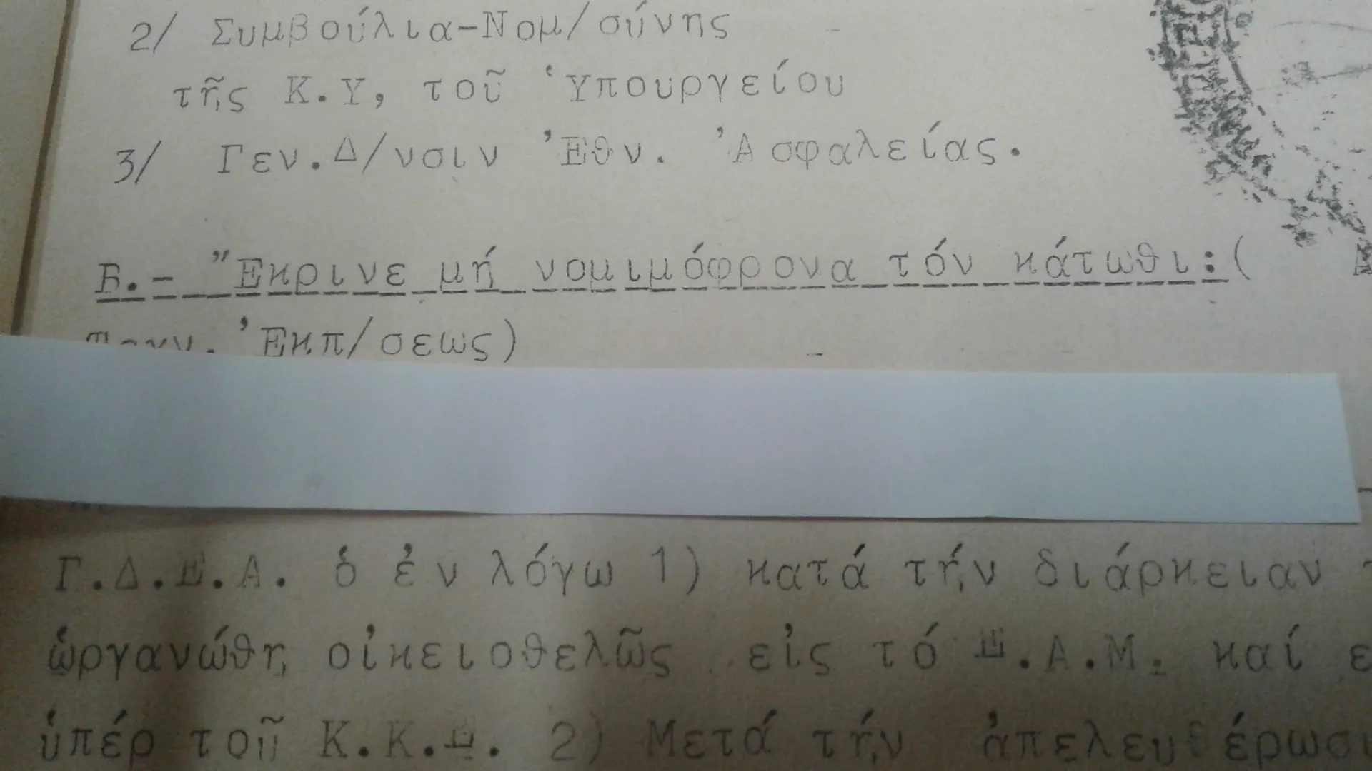 Με ημερομηνία 16 Δεκεμβρίου 1968, εμπιστευτικό έγγραφο του Συμβουλίου Νομιμοφροσύνης του Υπουργείου Εθνικής Παιδείας και Θρησκευμάτων, ενημερώνει το Ωδείο για τη μη νομιμοφροσύνη συγκεκριμένων καθηγητών. Ο χαρακτηρισμός «εκρίθη ως μη νομιμόφρων» αφορούσε υπαλλήλους που θεωρούνταν πολιτικά ύποπτοι ή αντίθετοι προς το καθεστώς, την περίοδο της Χούντας.