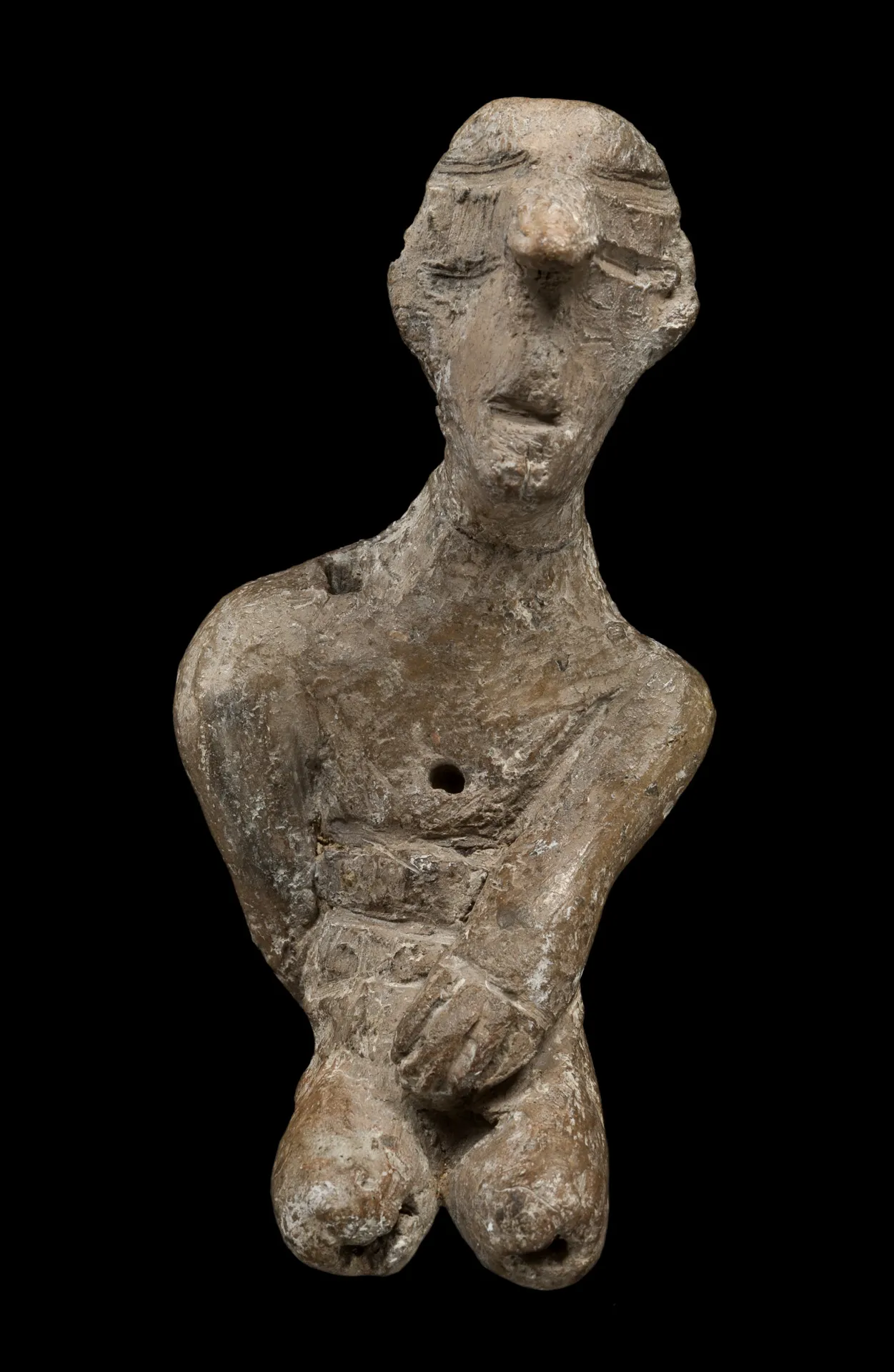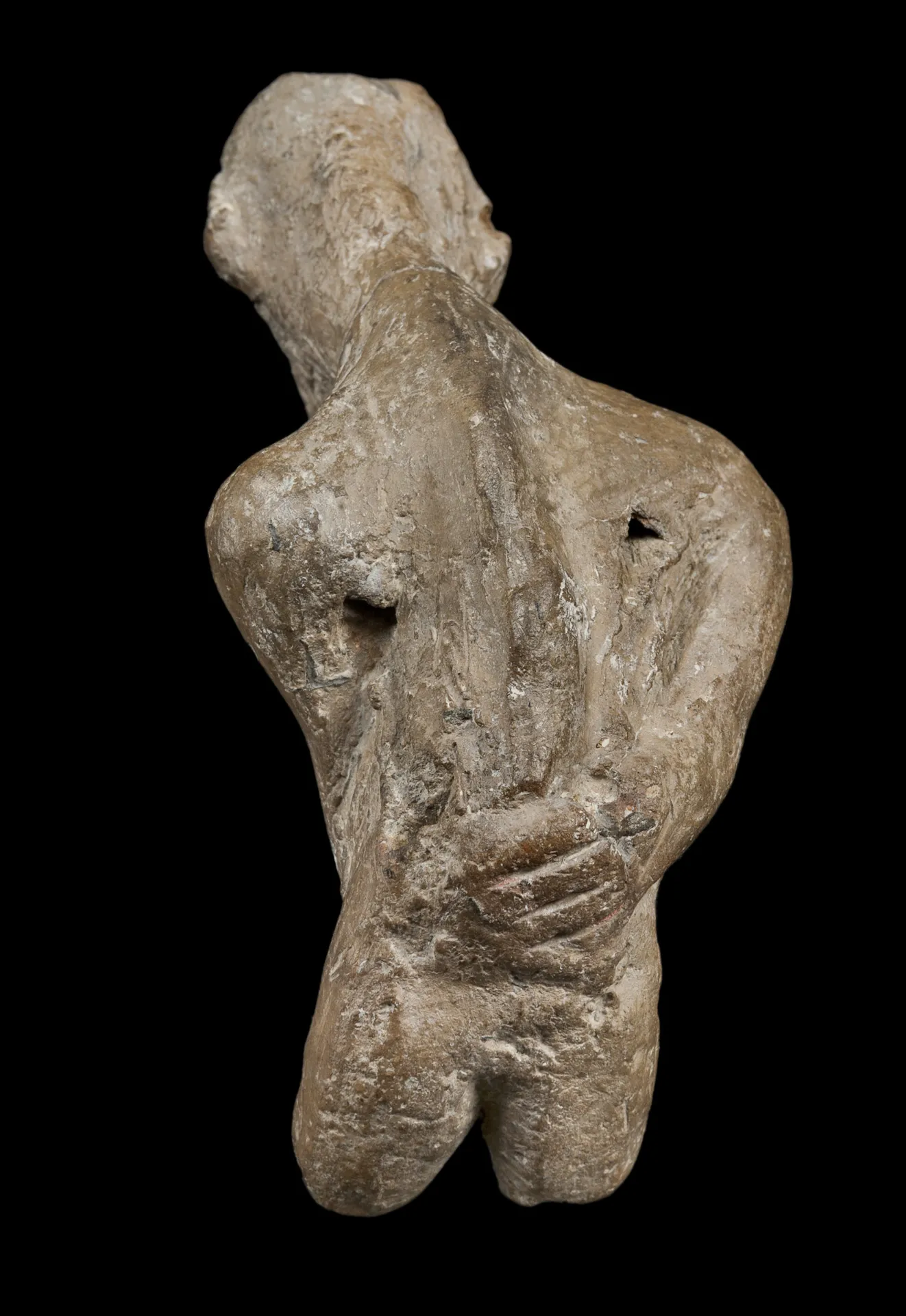 Μοναδικό ειδώλιο που εικονίζει ηλικιωμένο άνδρα (5285-5282 π.Χ.). Στην ελληνική νεολιθική δεν υπάρχει ανάλογο ή παρόμοιο ειδώλιο με το θέμα του γήρατος. Πηγή: Αρχείο Ανασκαφής Δισπηλιού. Φωτογραφία Σωκράτης Μαυρομμάτης.