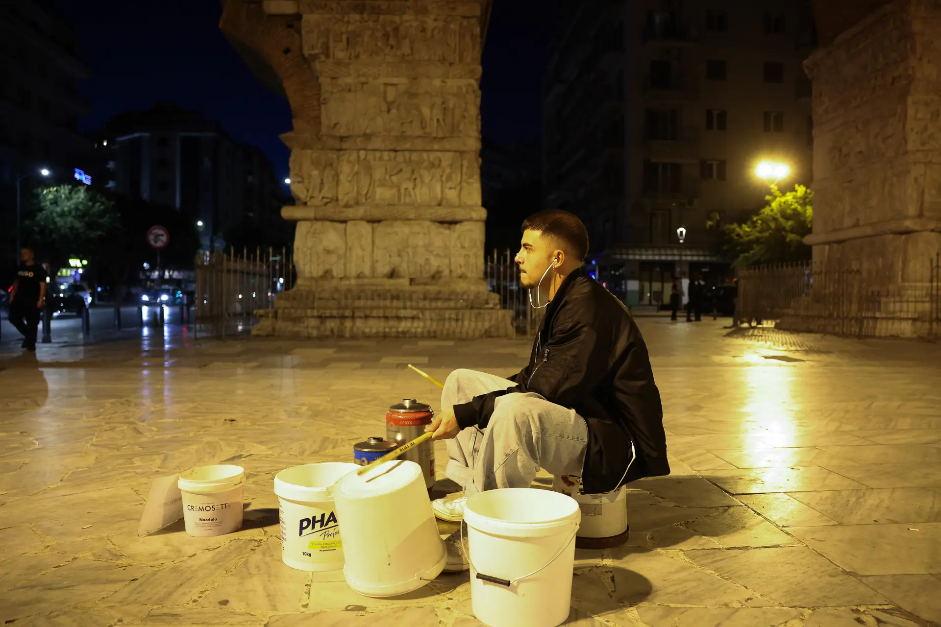 Η ιστορία του Θεοχάρη Γρηγοριάδη ξεκινά από μια στιγμή ανάγκης — όχι οικονομικής, αλλά εκφραστικής. «Η πρώτη φορά που βγήκα στον δρόμο ήταν τον Μάρτιο του ‘24 και πήρα την απόφαση γιατί ήθελα αυτό που είχα μέσα μου να το μεταδώσω και στους υπόλοιπους».