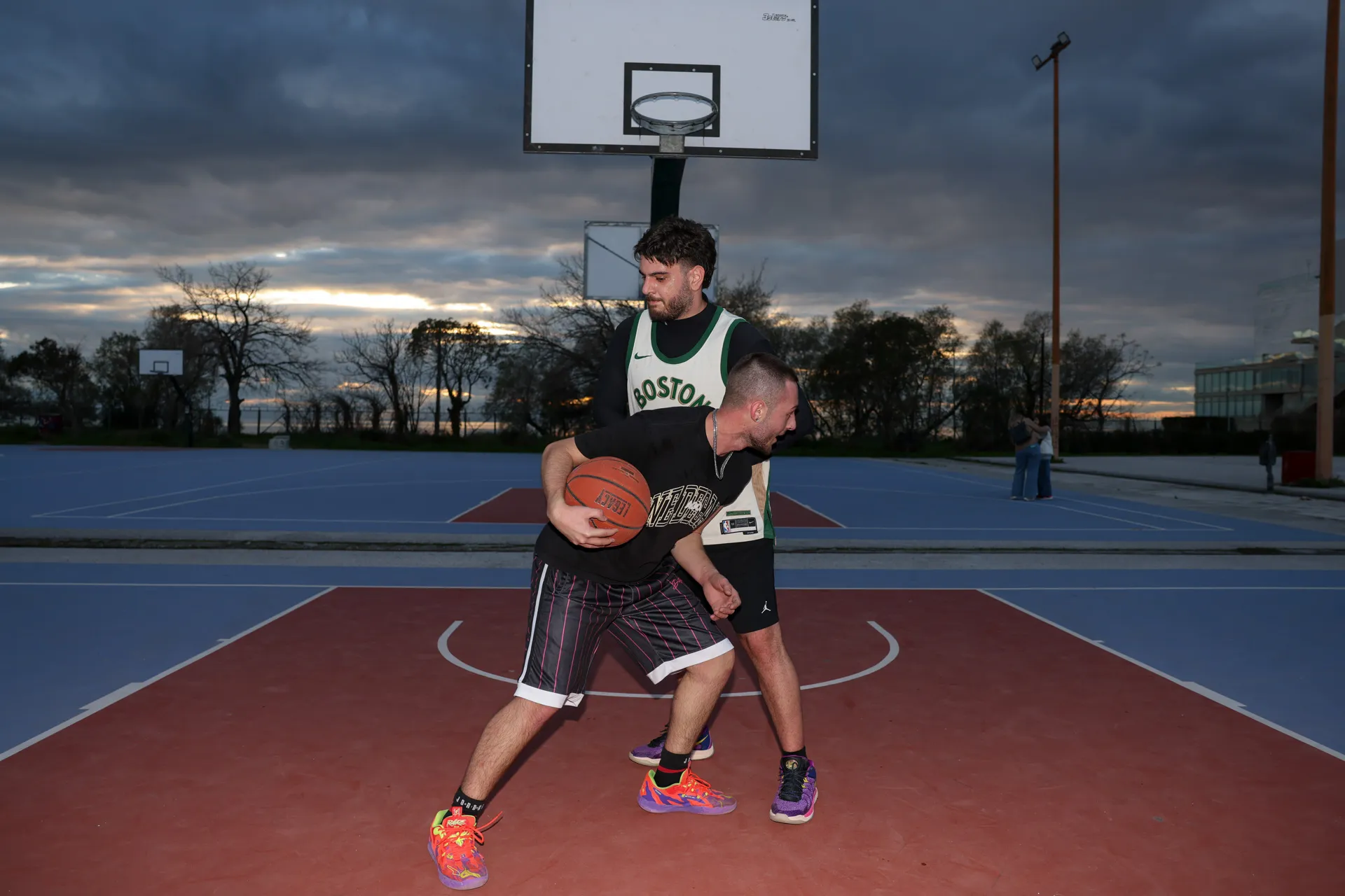 «Δεν υπάρχει περίπτωση να μην καταλήξουμε να παίζουμε 3on3 κάθε φορά που ερχόμαστε οι δυο μας» μου εκμυστηρεύονται ο Γιάννης και η Αγάπη, το πιο συμπαθές μπασκετικό (και όχι μόνο) ζευγάρι που θα μπορούσε ποτέ να γνωρίσει κανείς. «Είναι τρελό, όλοι έχουν τις κεραίες τους ανοιχτές και ψήνονται με τη μία να στήσουμε ένα μονό» μου λέει ο Γιάννης, συμπληρώνοντας πως το Ποσειδώνιο λειτουργεί και ως δεξαμενή κοινωνικοποίησης και επικοινωνίας. «Έρχονται όλο και περισσότερες γυναίκες να παίξουν εδώ, αλλά ακόμη υπάρχει δρόμος για να σπάσουμε τα ταμπού και τις προκαταλήψεις» μοιράζεται η Αγάπη, που απαιτεί από τους αντιπάλους την ώρα του παιχνιδιού να την παίξουν (σχεδόν) στα ίσα άμυνα.