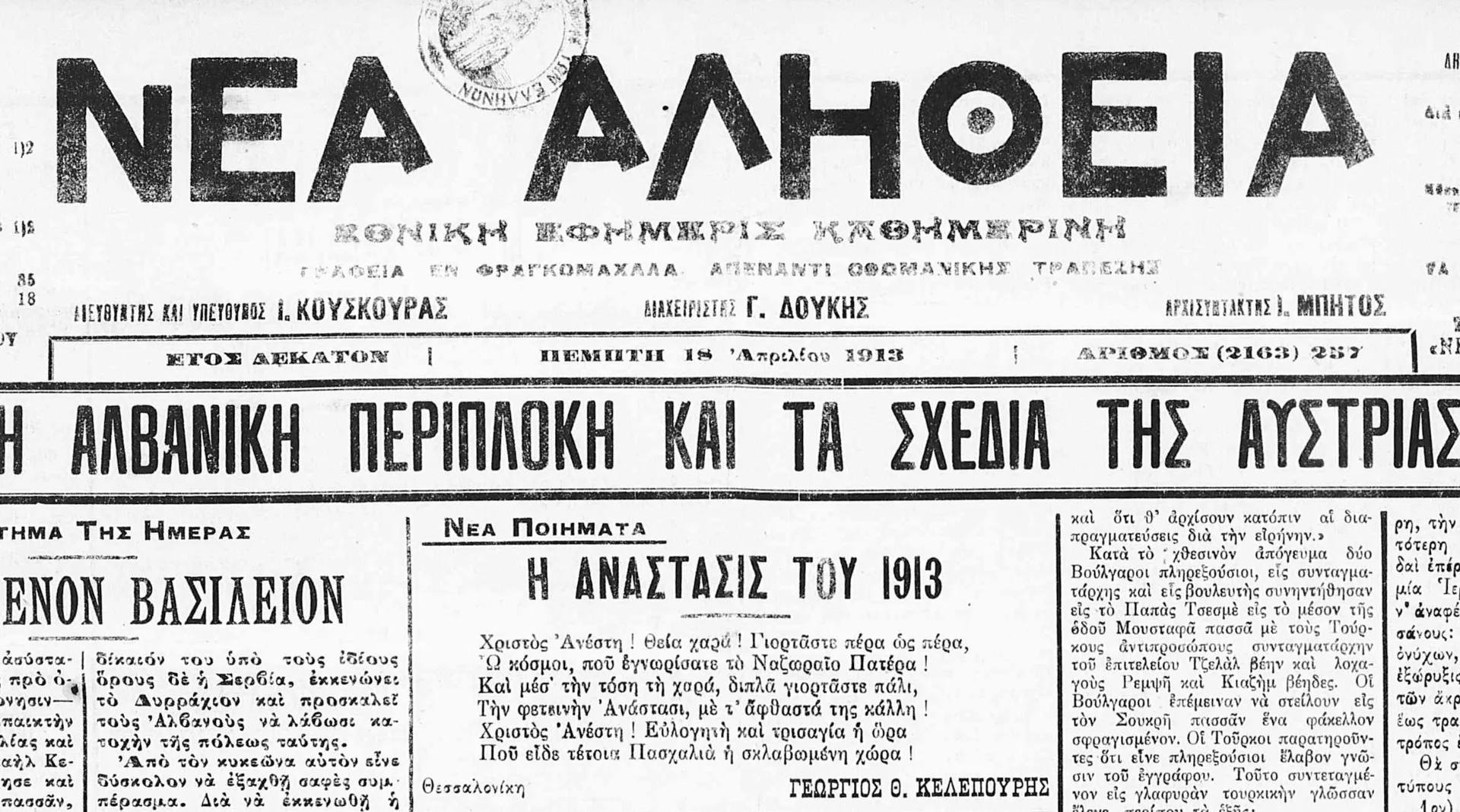 «Νέα Αλήθεια», φ. 18ης Απριλίου 1913