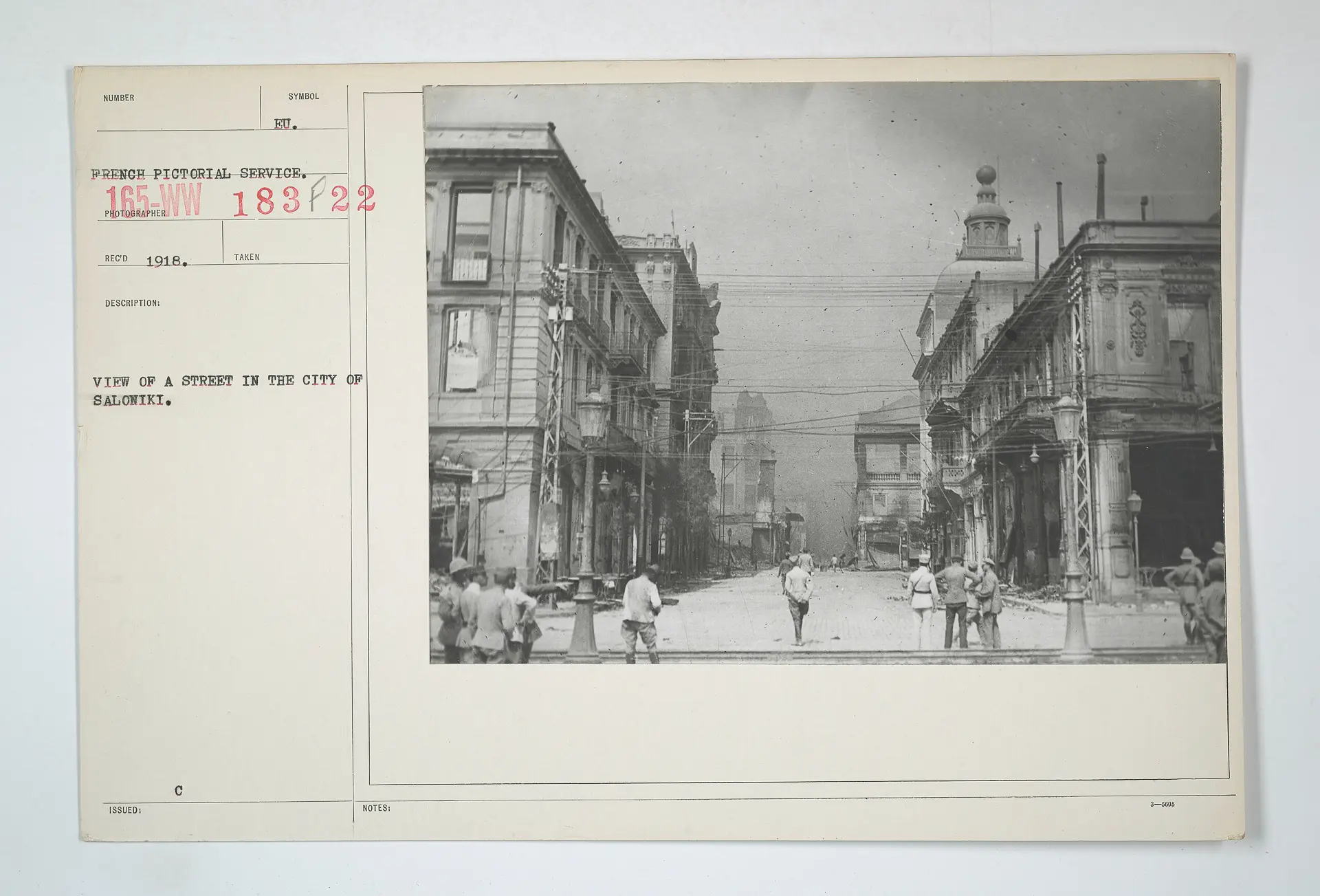 Συγχρόνως η Θεσσαλονίκη ήδη από το 1915 είχε μετατραπεί σε επίκεντρο μιας μαζικής «απόβασης» προς το Μακεδονικό Μέτωπο του Μεγάλου Πολέμου. Δεκάδες χιλιάδες συμμαχικών στρατευμάτων, απ’ όλες γωνιές του πλανήτη, κατέκλυσαν την πόλη και στην κρίσιμη ώρα της πυρκαγιάς συνέδραμαν καθοριστικά.