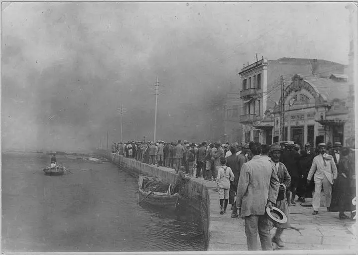 Ημερομηνία έναρξης, η 18η Αυγούστου του 1917. Ένα συνηθισμένο ηλιόλουστο και ζεστό απόγευμα, ο επί ημέρες ισχυρός βόρειος άνεμος πυροδοτεί πυρκαγιά στα βορειοδυτικά υψώματα της πόλης. Η πυρκαγιά εξαπλώνεται αστραπιαία, ολοένα και πιο χαμηλά. Ξεκινώντας από τους τουρκικούς μαχαλάδες της Άνω Πόλης, σύντομα θα κατακαύσει το μεγαλύτερο μέρος των εβραϊκών μαχαλάδων, αγγίζοντας την προκυμαία.