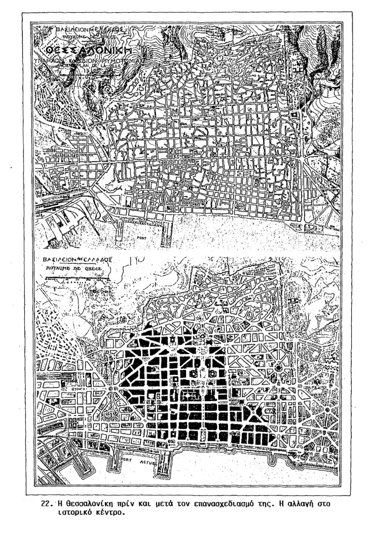 Όταν σίγησε η πυρκαγιά του ‘17, δύο μέρες μετά, είχε κατακαύσει ολοσχερώς τα δύο τρίτα της πόλης εντός των τειχών, είχε καταστρέψει 9.500 κτίρια και κατοικίες, κι αφήσει άστεγους κάπου στις εβδομήντα χιλιάδες κατοίκους. Κυρίως όμως, είχε αφανίσει τον ιστό της Οθωμανικής πόλης και εξαλείψει τον Εβραϊκό της πυρήνα (Mark Mazower. Salonica, City of Ghosts. 2005. σελ. 301) Προσέφερε, ωστόσο, το γόνιμο και κενό έδαφος προς ανοικοδόμηση, άξιο να χαρακτηρισθεί ως ένα από τα πρώτα μεγάλα έργα ευρωπαϊκού πολεοδομικού σχεδιασμού του εικοστού αιώνα.